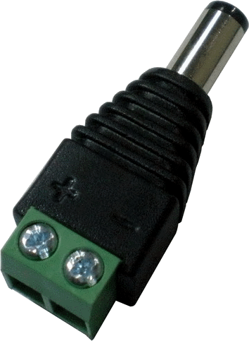 Connettore alimentazione 12V per telecamere. Jack maschio diametro 2,1mm. Morsetti a vite.