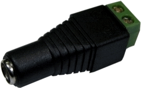 Connettore alimentazione 12V per telecamere. Jack femmina diametro 2,1mm. Morsetti a vite.